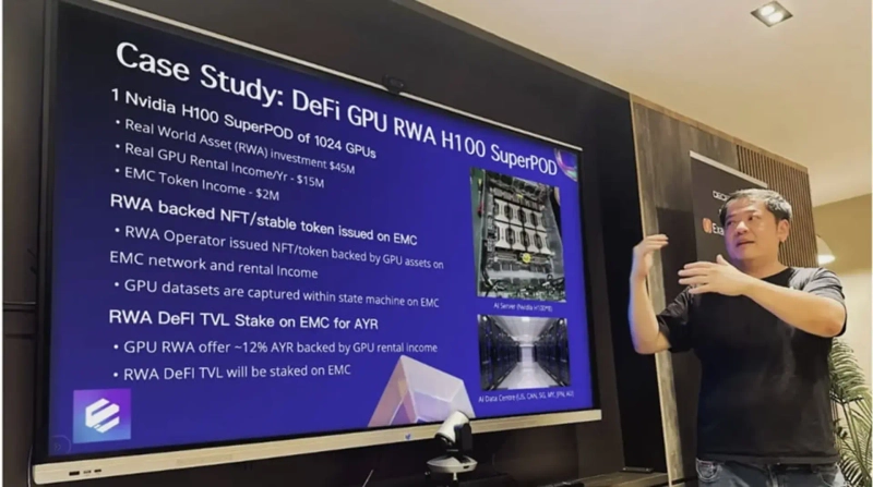 Alex Go, founder of EMC, explains the NVIDIA H100 cluster SuperPOD at Token 2049. /Photo provided by EMC