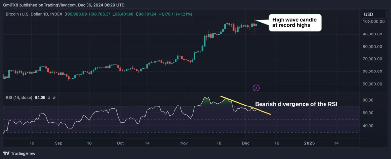 - CoinDesk reported that Bitcoin has fallen after reaching an all-time high, indicating a warning sign that the bullish momentum has weakened.