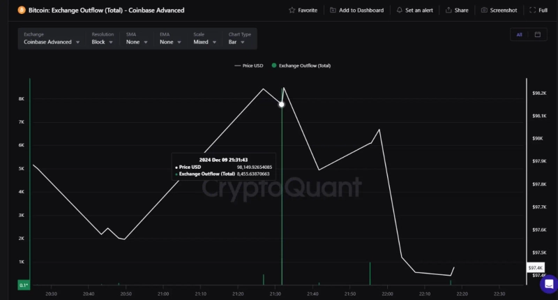 On the 10th (local time), CryptoQuant author Burak Kesmeci reported that "a phenomenon occurred where 8,455 BTC was withdrawn from a single block on Coinbase the previous day."